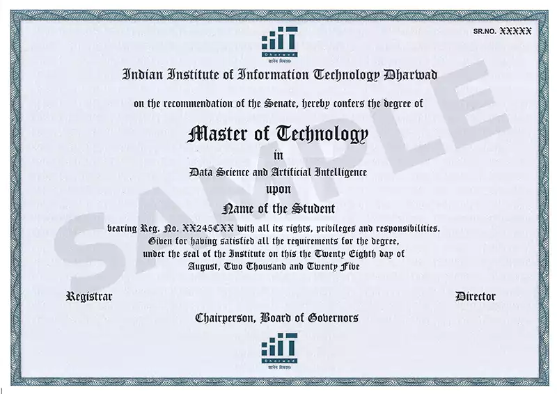 IIIT Dharwad now offers an M.Tech programme in Data Science and Artificial Intelligence, delivered online with the same quality, comprehensive coverage, and outcomes as its on-campus programme.